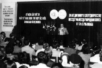 Đại tướng Võ Nguyên Giáp thăm gian hàng sách-báo Xunhasaba tại Triển lãm sách Thư viên Quân đội